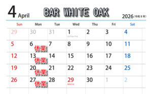 【2026年4月の営業日お知らせ】銀座のウイスキーバー|BARWHITEOAK