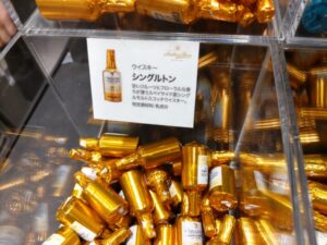 この商品は、一般的な「ウイスキーボンボン」とは異なり、チョコの内側に「砂糖のコーティング(シャリシャリ感)」が一切ないこと。ボトル型のダークチョコレートの中に、シングルモルトスコッチウイスキーが贅沢に閉じ込められています。
